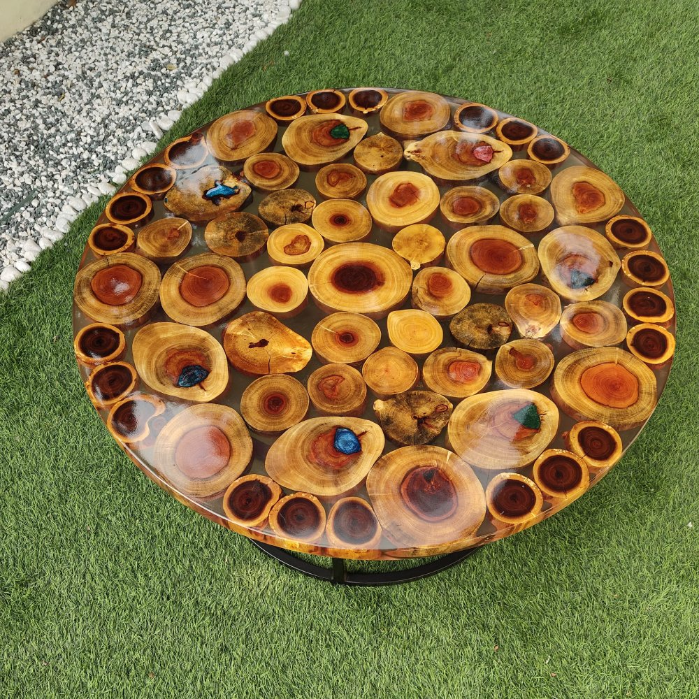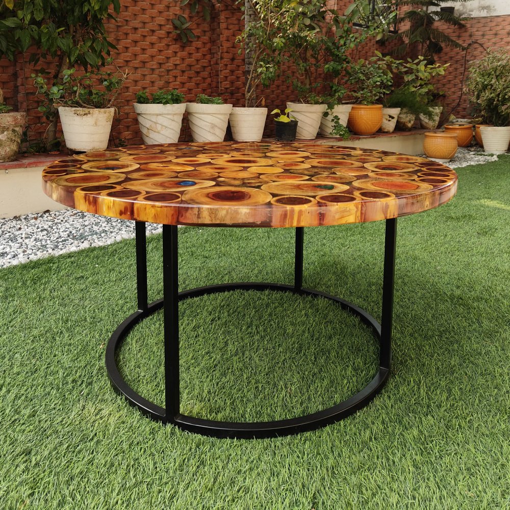 The moment you see the Wooden Log Epoxy Center Table, it feels like nature’s warmth and elegance have stepped into your abode. Imagine a cozy evening, the soft tones of light gleaming over the shiny epoxy finish while letting the sheen of each wooden log loose – now imagine glossy logs serve as the Epoxy Center Table piece of your living room. This table has more than just an ordinary function. It proudly beholds a beautiful masterpiece, a saga of its own. The uneven gloss finish styled with the wooden logs does not end here. Every piece, including the assorted logs, carries its distinct texture and color. As a result, each of these elements was meticulously chosen to create a gorgeous multi-color illusion. The artificial edges with smooth epoxy add an impressive touch while carving out the natural feel of these logs. It is like the table has taken in the spirit of a quiet forest right into the living room. The brown hue of the table top is sharply contrasted by the metal legs. The sturdy black metal legs offer a solid support that counterbalances the flamboyant organic table top. Seamless in design, the legs add modernity while keeping the table to the sophisticated blend of rustic and contemporary. With its 18-inch height and 36-inch diameter, it can asymmetrically fit into any zone whether it is a warm corner, a cheerful living place, or even a chic patio. Imagine being with friends and enjoying a cup of coffee or a good book while simultaneously marveling at how the table elevates the entire room. Its multi-color hues and designs match any style, making it one of the most highly sought-after pieces to have in a room. Specially designed and made by SattvaShilp, the renowned epoxy furniture manufacturer, this table exceeds all expectations when it comes to quality and attention to detail. It is more than just a functional object; it is a story that yearns to be revealed.